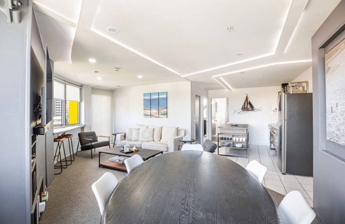 Perfectly located apartment by Zodiak Stays with great city views including Sky Tower. Spark Arena is a 6-min walk, Queen St a 15-min walk, and Parnell Road a 10-min walk. Secure carpark in the building makes outings easier!