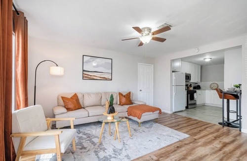 Step into Austin's vibrant heartbeat with our centrally-located 3BR abode. Positioned mere minutes from the airport, the bustling downtown, and the iconic University of Texas Austin campus, our home becomes your gateway to the city's rhythm. Accommodating seven comfortably, the interior marries style with ease—boasting a luxurious king, two plush queens, and a chic living space to unwind. Perfect for events, family trips, or university visits, this is where Austin's energy meets home comfort. Dive into city adventures by day and retreat to your urban oasis by night.