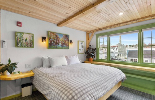 The Fly Bridge Room at the Downtown Camden Hotel is the most convenient way to experience Camden and all it has to offer. This room includes an easy-to-use cozy gas fireplace and a comfortable king-sized bed, perfect for relaxing after a long day. The custom bunkbeds are great for kids under 5 feet tall.