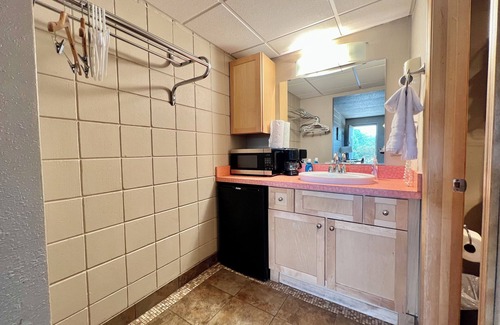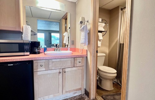 This unit measures roughly 300 square feet and offers a KING bed, desk, mini refrigerator, microwave, coffee maker and more!