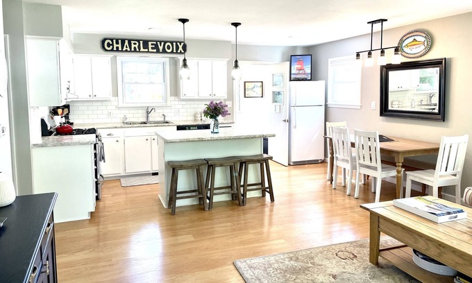 This home-away-from-home is in downtown Charlevoix! A perfect space for a group, family, or couple’s getaway up north.
