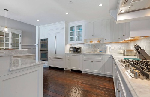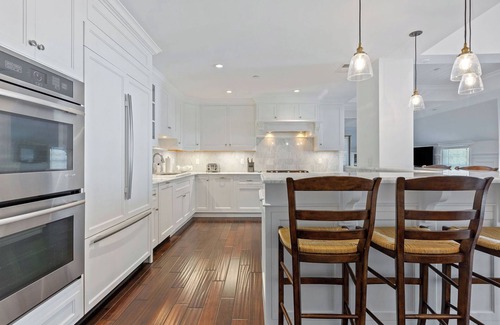 The stunning kitchen is fully equipped with all the appliances, cookware, and utensils you need to feel at home including double ovens, coffee machine + coffee, blender and so much more. There are 6 stools at the counter.