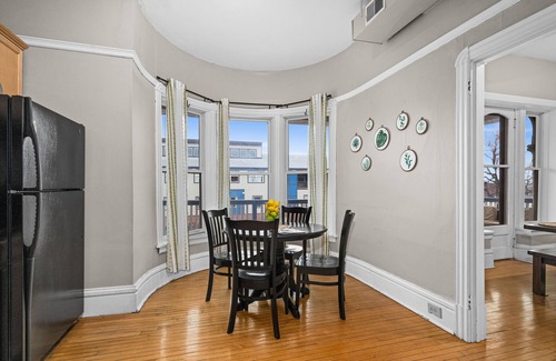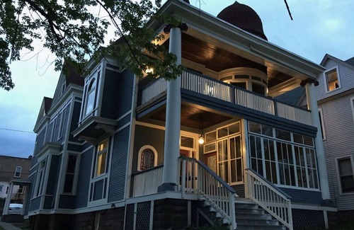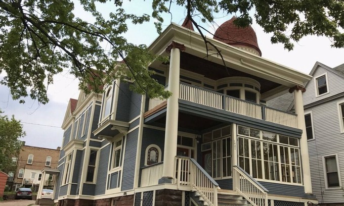 This stunning Victorian condo is located in the heart of Duluth just a short distance to the Rose Gardens and Lake Walk along gorgeous Lake Superior. The entry is located upstairs on the second floor and features two levels where you can enjoy many fantastic views of Lake Superior. The main level of the condo opens up to a fully stocked kitchen with your basic essentials and plenty of dining space. These rooms are full of natural light and adorned with tropical inspired details. The large dining table is the perfect place to entertain or play a game. Directly off the dining area is a private balcony where you can enjoy the partial lake view. The bathroom is located on the main level of the condo and is outfitted with the basic amenities. Upstairs the third floor features vaulted ceilings, a living space and two large bedrooms. Curl up on the large leather sofas and wrap up in a throw blanket while you enjoy your favorite shows on the Smart TV or read a book while you sit in the chaise lounge in the rotunda. When you are ready to catch some Z's the king and queen bedroom are outfitted with comfortable beds, bedside lighting and ample storage space. There is also a day bed tucked in the corner of the living area for additional sleeping space. Please note, this unit requires stairs and is not handicap accessible.
