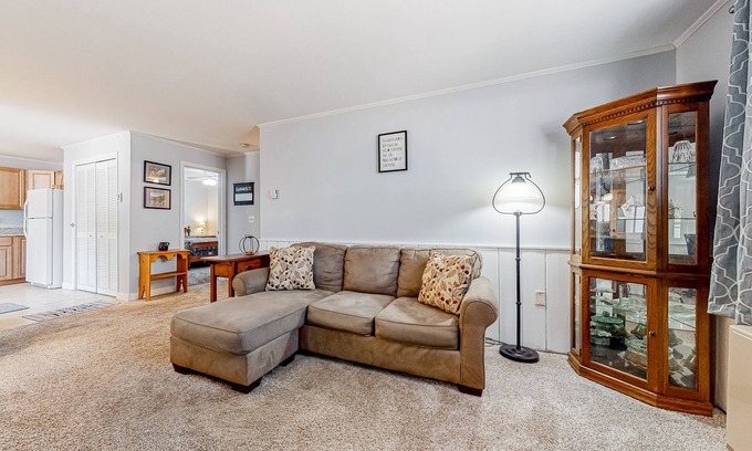 This first-floor retreat offers a cozy open floor plan that effortlessly combines all living spaces into one. The living room provides you with an inviting place to unwind and create everlasting memories with your loved ones - stream your favorite shows on the smart TV or break out any of the provided board games for an exciting evening at home. The well-appointed kitchen has all the essentials to prepare savory and memorable meals for your guests, including a dishwasher that will make cleaning up a breeze. There is a stacked washer/dryer in one of the bedrooms should you want to extend your stay.