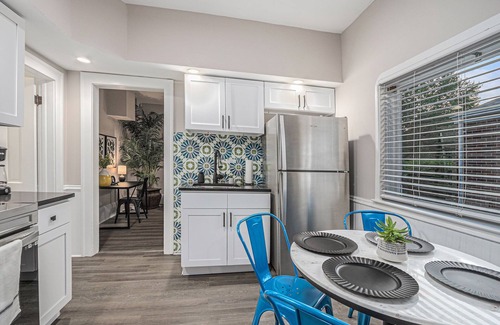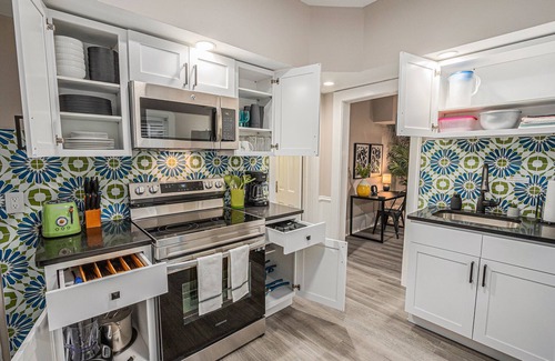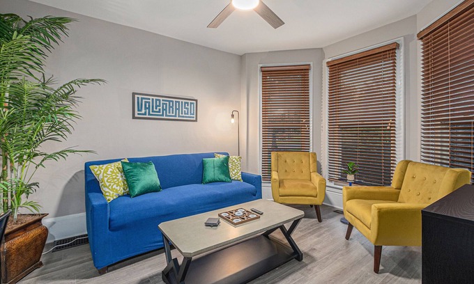 This apartment (fully updated in 2025) sits among four other private units, all under the same roof of a historic home. Note that this apartment has its own private entrance, and everything shown in the photos for the interior of the listing is your own private space. You will have your own living area, kitchen, bedroom, and bathroom--these areas are not shared with other guests. The only area shared with other guests is the outdoor area (picnic tables, backyard/front yard, bags games, laundry room).