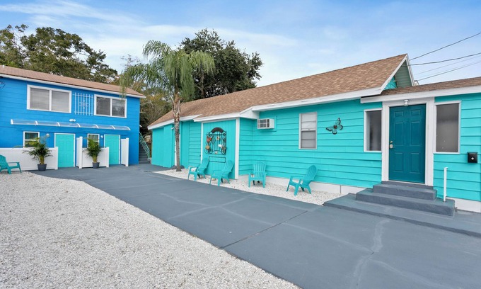 Welcome to The Dunedin Main Street Retreat, a charming quad-plex property in the heart of Dunedin, FL! Walk to downtown shops, restaurants, bars, marina, and the Blue Jays Stadium. Perfect for families and large groups, each unit offers cozy spaces, and the property features a shared outdoor area with a fireplace, grill, and parking for four cars. Just minutes from local beaches like Honeymoon Island, it’s ideal for relaxing or exploring. Book now and enjoy Dunedin’s charm and coastal beauty!