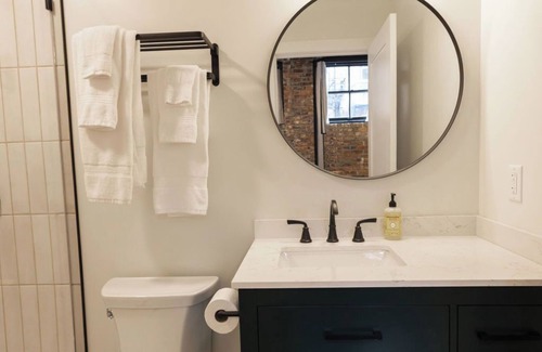 Experience downtown Toledo from this stylish studio nestled in a newly restored produce warehouse. Thoughtfully updated with modern comforts while preserving its industrial charm, this bright, open-concept unit features one king bed, a private bathroom with shower, TV, Wi-Fi and a well-equipped kitchenette perfect for weekend getaways, business travel, or extended stays. Secure electronic access and a building elevator makes self check-in a breeze.