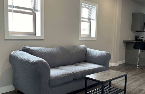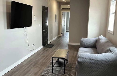 Stay in the heart of downtown in this stylish, spacious one-bedroom apartment. It features a large kitchen with stainless steel appliances, a cozy living area with a flat-screen TV, and a peaceful bedroom with a queen-sized bed. The modern bathroom includes a walk-in shower. Enjoy free Wi-Fi, air conditioning, and easy access to nearby restaurants, shops, and public transportation. Non-smoking, with free street parking. Book now!