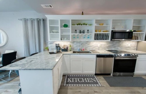 This beautifully remodeled modern duplex is absolutely luxurious. Located in the heart of downtown with a wrap around porch and stunning views of the downtown. The home has three bedrooms and two bathrooms with fully equipped kitchen.