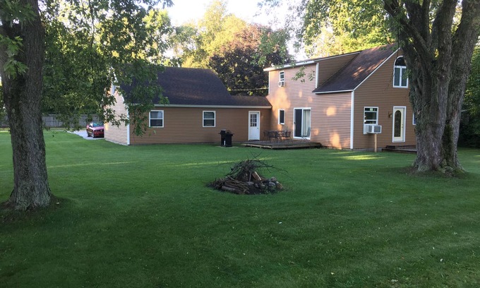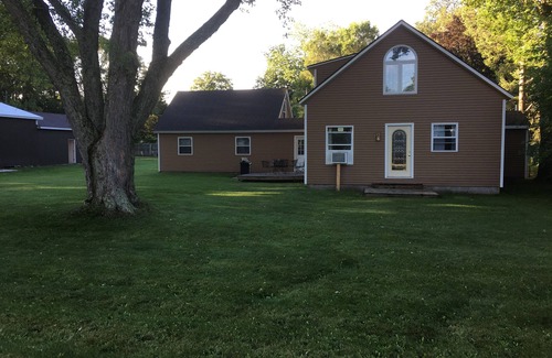 Two Bedroom with loft. Completely redone farm house. Two bath one up one down. New drywall, flooring, plumbing, electrical all brought up to code. Large bedroom up with California King bed, 32 inch tv. Loft area with private queen and semi private twin. Queen in first floor bedroom with 32 inch tv.