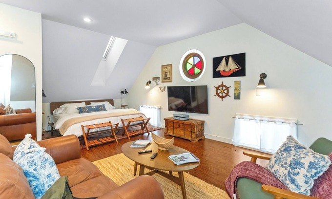 Great for Couples: Open-concept space with King bed, soft linens, and a work desk
