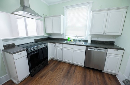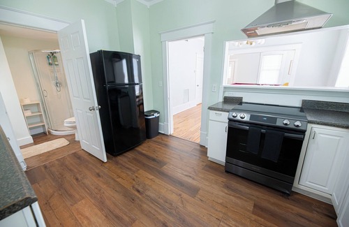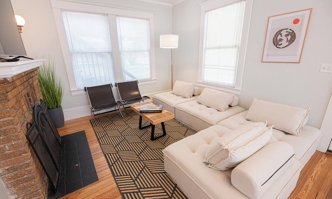 Tailored for any design enthusiasts our home is designed to be an aesthetic blend of vintage and contemporary decor. Step into the beautifully curated living space with Japanese influence, iconic Mid Century furniture, and complete with a Pool table. The dining area is open and vast, and includes a handcrafted wooden dining set that can sit 6-8 people comfortably. The open concept layout connects the living, dining, and kitchen areas providing the perfect social atmosphere for guests to enjoy a spacious and memorable experience. The 2 bedrooms each come with a king size bed and a 55 inch smart tv for ultimate comfort and relaxation. Additionally the master suite has its own private bathroom and a couch/ sleeper for an additional 2 guests if needed. Private parking for 2 vehicles is included directly behind the property and additional free parking on street is available.