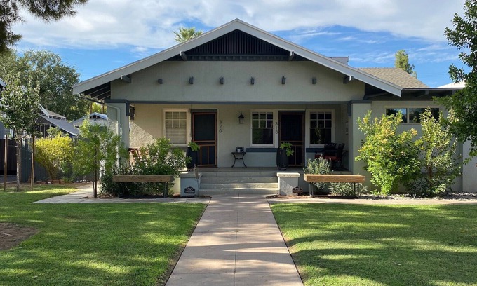 Located in the Historic Roosevelt neighborhood adjacent to Downtown Phoenix, this 100+ year old home maintains it’s historic charm & character without compromising on quality & comfort. Most popular feedback heard is “love the place”, “extremely clean”, “great neighborhood” and “perfect location”. Kitchen is equipped for full cooking, comfortable bed & pillows and full size laundry. Modernized to meet the needs of today including 100mb/sec Internet, an alarm system, & Smart/Cable TV. Walking distance to many restaurants, museums and of course all Downtown Phoenix has to offer. Just two blocks away from Margaret Hance Park, the I-10 freeway and a Lightrail stop. You have your own private backyard w/ sitting area and the view from the huge front porch is picturesque. Over 100 5-star perfect reviews from guests staying here.