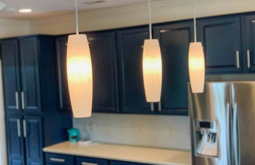 With 10' ceilings and an open concept- you will love how spacious our home feels. The kitchen flows into the stunning living-dining room combination. Warm up by the gas fireplace, watch a movie on the 55" Roku SmartTV and take your breakfast on our floating bench.