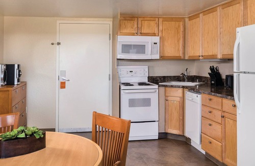 This urban resort consists of stylish one- and two-bedroom resort suites, which comfortably sleep four - six guests in 581 - 884 square feet. All suites feature one queen bed in the master and a queen Murphy bed in the living area. Two-bedroom suites also include one queen or two twin beds in the second bedroom. You will certainly appreciate the economy of a full kitchen, dining area, plus a washer/dryer in your suite which will allow you to save money by dining in and packing lighter.