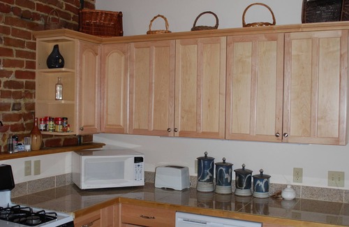 The unit is nicely furnished with leather couches, oriental rugs over the hardwood floors, new comfortable queen beds, etc. The kitchen is fully stocked with dinnerware, Caphelon cookware, new appliances, granite countertops, and lots of new cabinets.