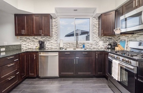 This unique house has two skylights, two balconies facing the city, a fully stocked kitchen, fast WiFi, a book nook, four smart TVs & so much more! Please note we do not accept locals at any of properties
