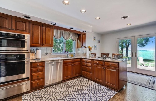 Begin your day at Riverview Retreat with a beautiful sunrise and be amazed with a stunning sky at sunset. As soon as you enter this charming cottage you are greeted with wide open vistas of the Miles River from the foyer, living room, sun room, kitchen and dining room. Freshly painted and appointed with modern and comfortable furnishings, bedding and a well-stocked gourmet kitchen, this three-bedroom two and a half bath home is sure to please. Located close (75ft) to the water's edge, where you can fish or crab from the private dock. Crab cages are available for your use as well as 2 kayaks, 2 paddle boards, cornhole boards, and 2 adult bikes to mosey into St. Michaels for ice cream or a little shopping. Or simply relax in the Adirondacks and enjoy the sailboat races and wildlife that frequent, including osprey, turtles, rays and even the occasional pod of dolphin that make their way up the Miles River. St Michaels is a 15-minute walk or less than 5 minutes by bike with all the conveniences, including shopping, restaurants, wineries, the Chesapeake Bay Marine Museum and more!