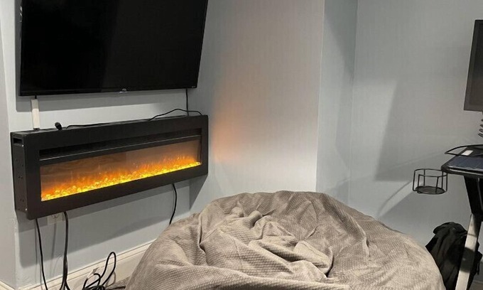 Room is beautifully decorated with lots of modern amenities and decors, big screen television, and an electric fireplace.