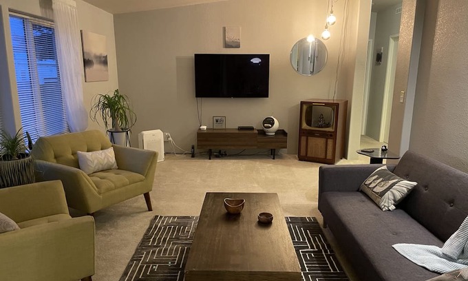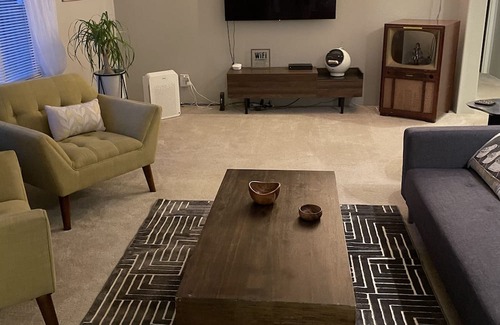 We have a double closet for you, double dresser, a 4K brand new OLED tv in the living room and a tv in the larger bed room, cable in both tv’s, smart tv, prime video capable, Netflix capable, tempur pedic mattress in the larger bedroom, games for the family, a record player, an 8 track player, an air fryer oven and so much more!