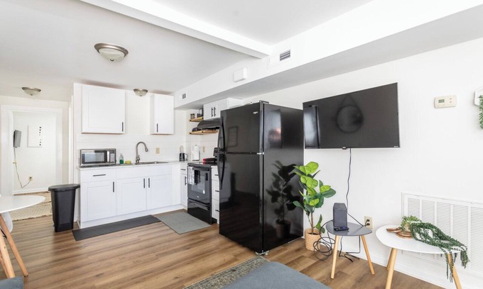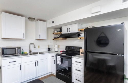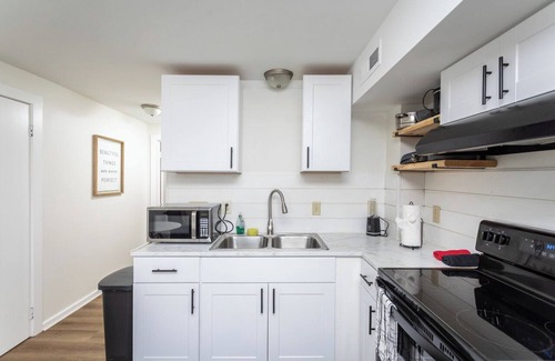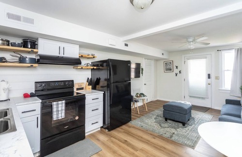 Relax and spend a blissful night or two (or seven) in this convenient space featuring a full-size kitchen, stylish one-bedroom, and full bathroom. Kitchen features an oven/stove, refrigerator, and microwave. The kitchen is fully stocked for 2 with pots, pans, utensils, cups, wine glasses, etc. WIFI/NETFLIX provided. Convenient location with private entrance, walkable distance to Basic City Brewery. Short drive to Blue Ridge Parkway and Wintergreen for a full day of hiking.