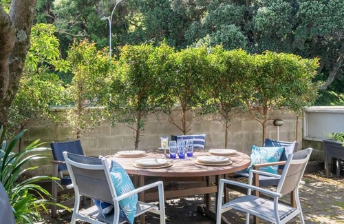 The perfect holiday destination in downtown Mt Maunganui! This sunny townhouse is situated just across the road from Mt Drury park and playground and is within easy walking distance to both the main beach and the harbour. Step out of your private front entrance into the vibrant Mt Village with restaurants, cafes, bars right there. The living and kitchen are spacious with large windows overlooking the park. Enjoy one of three separate outdoor areas under the privacy of the large trees.