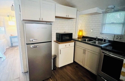 Dragonfly Cottage is Located near Downtown Ocoee & Winter Garden ~Offering some of the Best Shops and Restaurants that Central Florida has to offer! 20 minutes to Universal, 25 to Sea World, 30 to Disney. This adorable Cottage has it's own Separate Parking (2 Spaces) and is nestled in a Quiet little Enclave of Greater Orlando. Completely remodeled for your comfort and enjoyment, The living room has a fold down futon sofa that makes a twin bed, 5g Wifi and Roku tv with free channels & you can use your netflix account as well. The Kitchen is fully furnished with a microwave, regular size oven, refrigerator and coffee station with a french press/coffee, creamer etc. The bedroom is generously sized and has a full size bed & a bathroom that has been completely redone with all new tile. Many upper end finishes make this super cute cottage a sure favorite. Welcoming, cozy & clean with your comfort in mind! Come and relax in this adorable Getaway Cottage.