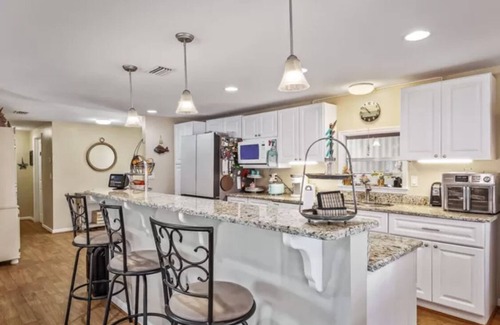 This Shell Point home boasts 3 inviting bedrooms, including 3 queen beds. With 2 bathrooms featuring a bathtub and shower, guests will feel right at home. The property offers a washing machine, heating, AC, and Wi-Fi for added convenience. This home is just a 10min walk or a short golf cart ride to the beach and public boat ramp (contact owner for details on golf cart pricing). It also has its own dock for your boat . You can enjoy a walk at sunrise or take a stroll to see the Milky Way after dark. Nestled in a serene setting, this marvelous retreat is the perfect escape for your next getaway. It's easy to see why you'll be able to unwind at our place.