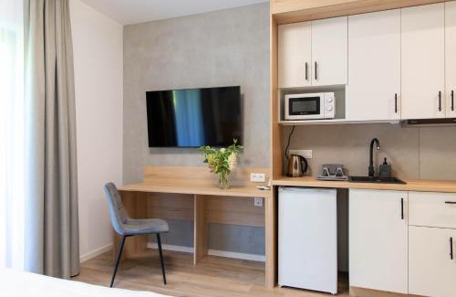 Drawskie Apartamenty provides a fitness center and air-conditioned accommodations in Drawsko Pomorskie. This condo hotel offers a garden. The condo hotel also features free Wifi, free private parking, and facilities for disabled guests. The units come with carpeted floor and feature a fully equipped kitchenette with a microwave, a dining area, a flat-screen TV with satellite channels, and a private bathroom with shower and a hair dryer. A terrace with an outdoor dining area and river views is offered in some units. At the condo hotel, every unit comes with bed linen and towels. You can play billiards and darts at the condo hotel. Solidarity Szczecin-Goleniów Airport is 49 miles from the property.