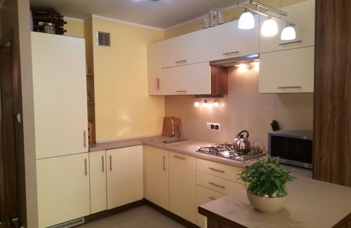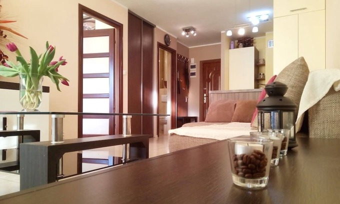 You will not miss anything here. The apartment is ideal for business meetings, business trips and a getaway with friends or family. The apartment is ideal for four people. There is a large bed 200 x 160 in the bedroom and a large sofa bed 200 x 180 cm in the living room.