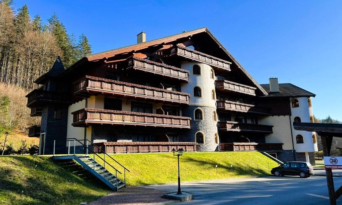 Providing a garden, Dream Apartments No.202 - Right in the heart of Tále provides accommodations in Tale. With garden views, this accommodation features a patio. There's an outdoor fireplace and guests can use free Wifi and free private parking. Featuring a terrace and mountain views, the apartment includes 1 bedroom, a living room, satellite flat-screen TV, an equipped kitchen, and 1 bathroom with a bath. Towels and bed linen are offered in the apartment. There's also a seating area and a fireplace. Ski storage space is available on-site and skiing can be enjoyed close to the apartment. Chopok mountain is 10 miles from Dream Apartments No.202 - Right in the heart of Tále, while Liptov Castle is 27 miles from the property. Poprad-Tatry Airport is 48 miles away.