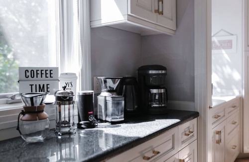 The kitchen is fully stocked along with a full coffee and breakfast bar.