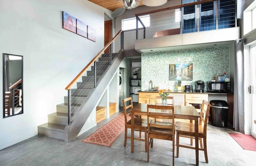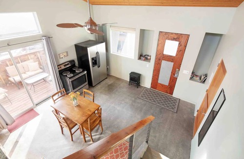 This modern casita sits on Leigh Hill overlooking beautiful Cedar City. It is probably THE best location for your visit! Just 1 minute from restaurants, shopping, and I-15. The space features 2 loft areas, a HUGE living room, a private deck, and a full kitchen. Just a two minute walk from the lake and aquatic center with beautiful pools!