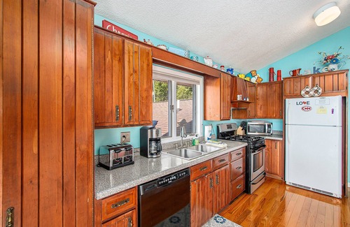 Perched upon the shore of Crystal Lake, this home is in a perfect location to make the most of your vacation. When you aren't on the lake, make your way to downtown Beulah and check out the local restaurants like The Cherry Hut and L'Chayim Delicatessen. Crystal Lake Golf Course is a short drive away as well, so bring your clubs along and make a tee time at this beautiful course. For a night out with the whole family, head up to the Cherry Bowl Drive-In Theatre and catch a movie while enjoying the summer air. Plus, the scenic drive to Point Betsie Lighthouse is always a good idea.