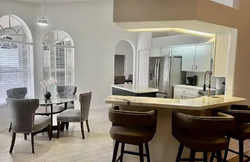 Get ready to create memories in this beautiful vacation property near Orlando! This lovely home has been designed and furnished with one aim in mind—to give you the perfect vacation you and your family deserve. You will have the opportunity to experience the magic of Disney World or the thrills of Universal Studios at your own pace and on your schedule. Or you could enjoy family time in home. This 3 bedroom, 2 bath accommodates a party of 11 in total comfort. The kitchen and living room are open and spacious, your guest can cook and entertain non-stop. There is a big-screen smart TV in the living room and a smart TV in the master bedroom which will keep your family entertained in the rare event of bad weather. The patio and pool area are HUGE, with ample seating options, Nice sparkling blue pool is a fantastic addition in which you may relax after a long day in the parks. With over 2000 sq. ft of heated space, your large family+ friends and family will vacation in comfort! Isn’t it time to enhance your vacation experience? Contact us today and you’ll finally have the wonderful Orlando vacation you want with the private, relaxing luxury home you deserve. We are a quick 30-minute drive from Disney World and a 1.5-hour drive from Tampa and from the closest beach which is Clear Water Beach.