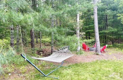 Enjoy our big private backyard setup with a hammock, patio and a cozy fire-pit.