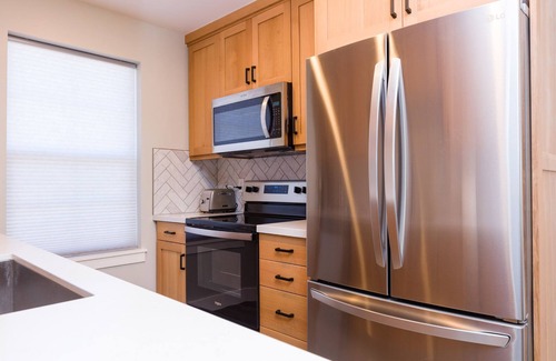 You will stay comfortable with a thermostat you control- air conditioning in the summer and heat in the winter. Staying a while and need to wash your clothes? We have you covered- this apartment has a full-sized washer and dryer for your use, as well as an ironing board with iron.