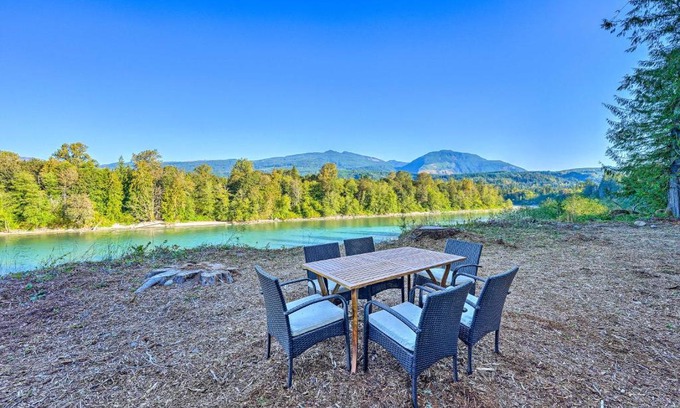 Dreamy Riverside Cabin with Fireplace and Grill is located in Concrete.