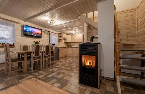 Providing a garden, Drevenička Rybička provides accommodations in Liptovský Trnovec. This property offers access to a balcony, free private parking, and free Wifi. The property features a children's playground and outdoor furniture. Featuring a terrace and mountain views, the vacation home includes 2 bedrooms, a living room, satellite flat-screen TV, an equipped kitchen, and 1 bathroom with a shower. The comfortable, air-conditioned accommodation also comes with soundproofing and a fireplace. For added privacy, the accommodation features a private entrance. A water park is available on-site and skiing can be enjoyed close to the vacation home. Aquapark Tatralandia is 2 miles from Drevenička Rybička, while Demanovská Ice Cave is 10 miles from the property. Poprad-Tatry Airport is 38 miles away.