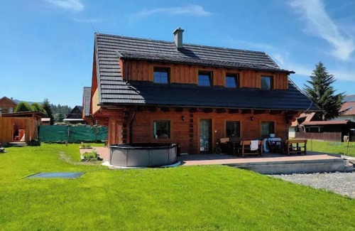 Comfortable accommodation in beautiful surroundings of Liptov nature in the village Lazisko on the edge of the Low Tatras. The house is built in 2022 in the style of traditional Slovak lumberjack and is located on a large private parcel.