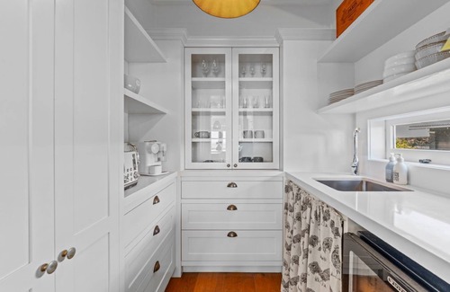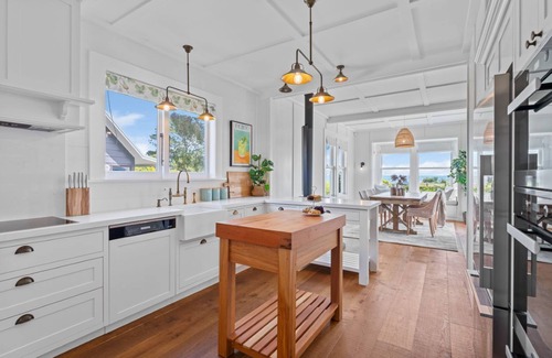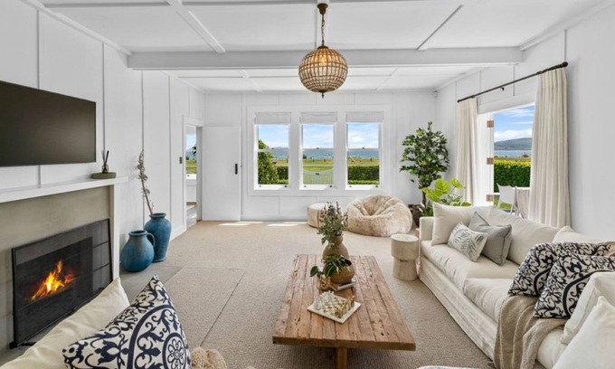 Featured in NZ House & Garden in April 2020, the main house offers a beautifully equipped kitchen with a scullery, leading to a stylish dining and living area. A luxurious master suite includes a king bed, ensuite, and walk-in wardrobe, while the second bedroom features a king bed with access to the main bathroom. The second cottage provides two additional bedrooms, one with a king bed and the other with two king single beds, along with a shared bathroom to ensure privacy and convenience for all guests. Together, the property comfortably accommodates up to 8 guests.