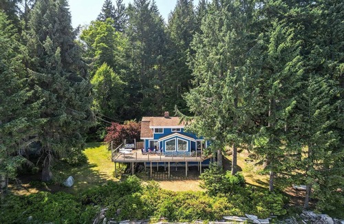 Fabulous oceanfront home on East side of Quadra Island, mins to Rebecca Spit & Heriot Bay, surrounded by trees on 5 acres. Open floor design home with stunning views over the ocean and light floods in from all directions. Large surrounding deck with various nooks to retreat to. The second floor has three bedrooms. Caretaker's cottage on the property with separate driveway and private, out of view. No smoking. No pets. No parties or large group gatherings.