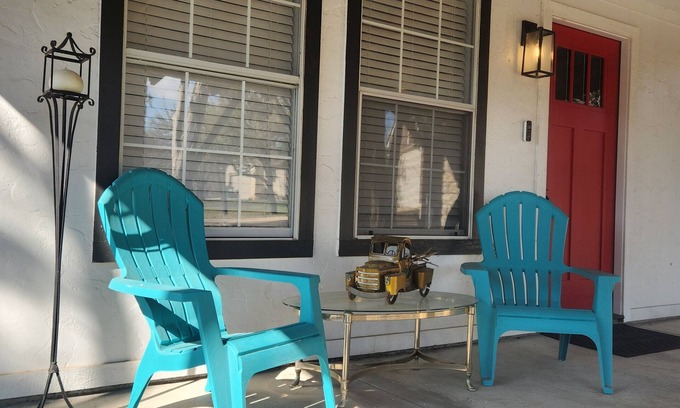 Enjoy coffee + cocktails + conversation as you relax on the spacious front porch or gather with friends for a BBQ in the giant backyard. With comfortable outdoor seating, this is the perfect spot to relax under the Texas stars after a day of exploring.
