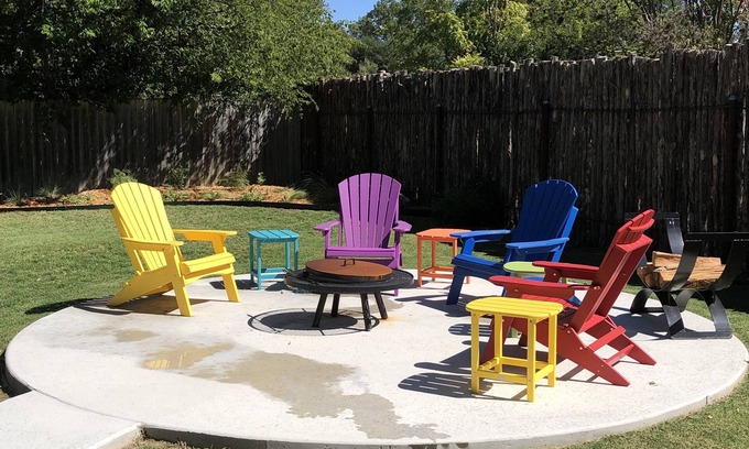 and a gas grill. Gather here to play Giant Jenga, lawn Bocce, and washers.