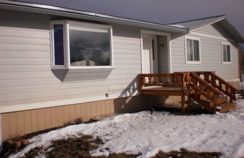Large windows in every room brings the outdoors 'in'. There is a deck on the lakeside accessible from the dining room on the main floor. Another large deck cantilevers the lake shore by the garage area! This is a historic deck--having been "rescued" --re-purposed---from a remodeling project at Yellowstone Park. It graced the front of the Old Faithful lodge for many years. It is fun to think about the thousands of pairs of feet from all across the world that strolled, skipped, or ran across its planks! Watching the sun come up with a hot cup of coffee or hot chocolate on the deck overlooking the lake couldn't get any better! It is also not uncommon to see wildlife stroll or run across the yard, and certainly always lots of water fowl on the lake, as well as large trout jumping. A word of caution, however. Grizzly & black bears have been sighted on our place. Be bear aware!! (Bear spray in cabinet above clothes dryer) sad to say, recent years have seen the level of the lake receding. We hope abundant slow falls will restore some of that. We no longer can use our little roll-out dock to fish from. 😢 Cows and horses roam this area as well, and a few friendly neighborhood dogs. This is rural Montana, where livestock and wildlife outnumber people! A neighbor down the gravel road even has a tame bison as a pet.