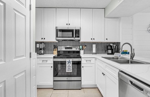 ➥ Modern Kitchen – Equipped with coffee maker, cutlery, cookware, microwave, glassware, silverware, and more!