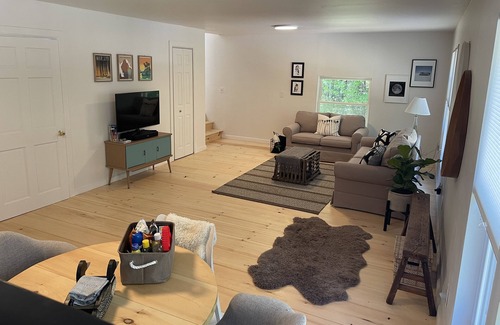 Two story suite above our garage. Private entrance. Laundry and utilities included. Netlfix and prime video also. 17 mins to midcoast hospital. 45 mins to portland. 30 mins to freeport.