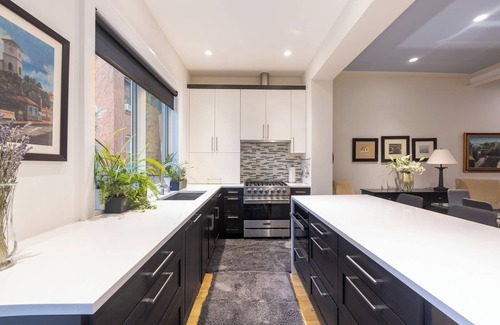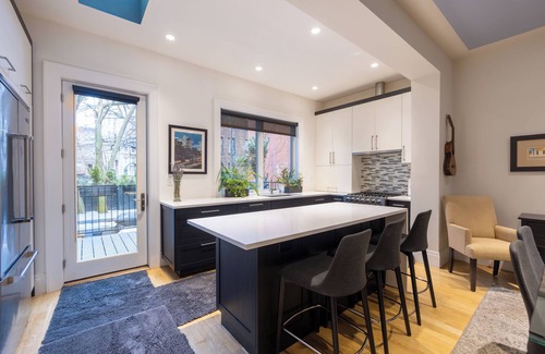 This is one of a kind 1600 square foot duplex apartment with a 1200 square foot backyard (unheard of in NYC) and a deck, seating for 8-10 people, and a Weber BBQ grill. It has a modern kitchen with Viking kitchen appliances, a Steinway upright piano, and a 55 inch 4K Ultra HD TV. Each bedroom has its own private bathroom and there is an additional powder room in the open living space. The master bedroom also has its own private access to the backyard. Conveniently located between two subway stations and just one stop away from Manhattan, Williamsburg is the coolest place to be! This neighborhood is home to dozens of NYC's best restaurants, bars, cafes, and shops. The apartment is just steps away from Bedford Avenue and a three blocks from the waterfront's Domino Park. It is located on the first two floors of a town house, giving it a cozy home away from home feeling.
