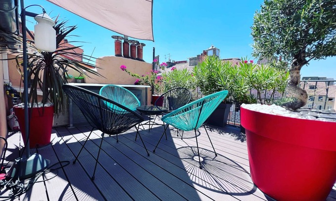 Duplex with terrace - hyper-center of Toulon is located in Old Town. Duplex with terrace - hyper-center of Toulon provides accommodation, featuring TV, View, Balcony/Terrace, among other amenities. This Apartment features TV, View, Balcony/Terrace, to make your stay a comfortable one.