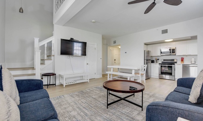 This spacious, open-concept condo was recently updated in October 2023. The upstairs loft offers two Queen beds and a full bathroom, while the downstairs living area features two Queen pullout couches and a half bathroom. A fully equipped kitchen and private washer/dryer add to the convenience. Relax on the outdoor sundeck and soak up the laid-back island atmosphere.